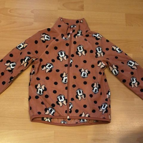 Flot fleecejakke sælges . Den er brugt men stadig i fin stand . Den er fra H&M . Den er i str 122-128 . Den sælges for 25kr