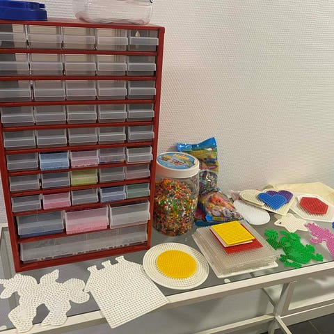 2 æsker med mange perler i alle farver (+ en ekstra pose røde).