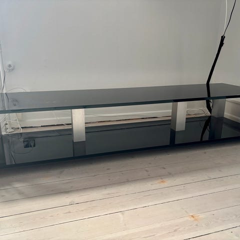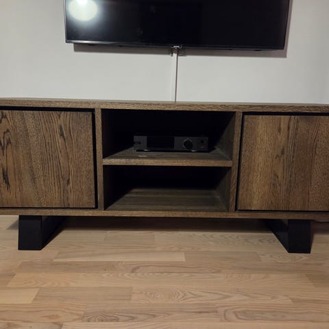 Sælger et stilfuldt og Meget velholdt Spectral TV-bord med indbygget højtalersystem og smarte tilslutningsmuligheder inkl. Stikkontakter, oplader til iPhone, USB- og HDMI-adgang – nem tilslutning til dine enheder.