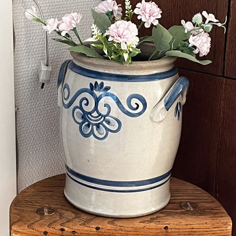 Den er 15 cm høj og i toppen er den 20 cm. Perfekt til syltekrukke.
