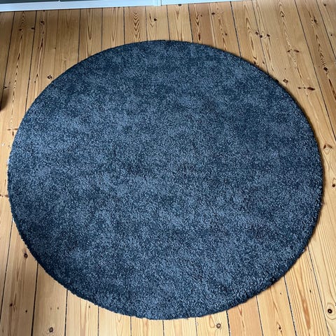 Gulvtæppe, b: 120 l: 120, Rigtig fin rund tæppe i grå farve. Fejler intet.