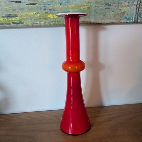 Opalblå glas Carnaby vase fra Holmegaard. Designet af Per Lütken