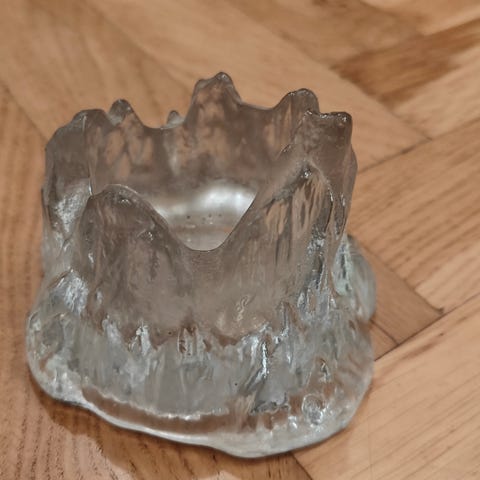 Lysestage til fyrfadslys, stjerne af mørkeblå glas. Højde 6 cm. Kan afhentes i på Amagerbro eller i Hørsholm.