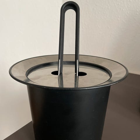 Måler 14,5 cm i højen og 13 cm i bredden.