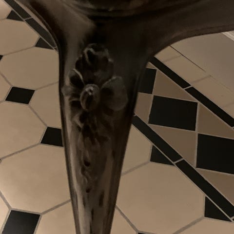 Sofabord, Vintage, bøgetræ, b: 36 l: 36 h: 48, Smuk, vintage bord. Mørkt træ med en blomster på selve bordpladen