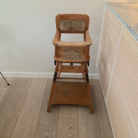 Vintage spansk træstativ fødselsstol Brutalist stolsto