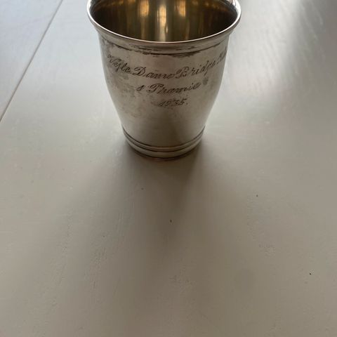 Antikt sølvbæger på fod (h ca. 9 cm).