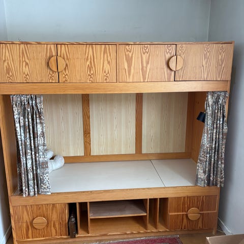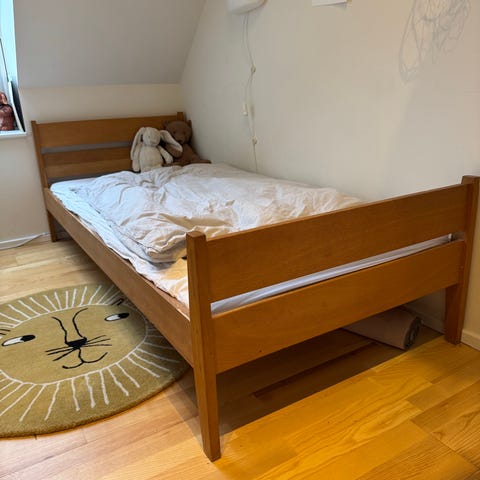 Enkeltseng fra IKEA. Ca 35 år gammel. Har oprindeligt været en del af en køjeseng. Fejler ikke noget. Vi hat malet tavlemaling på den ene gavl.