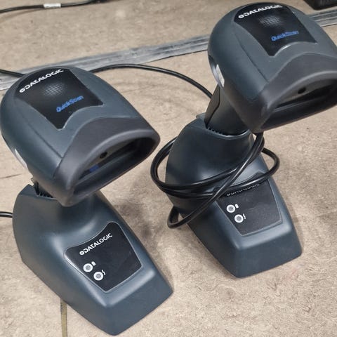 Datalogic Touch 65 Pro stregkodescanner i grå farve med USB-tilslutning. Denne model er designet til effektiv scanning af stregkoder og er ideel til brug i detailhandel og lagerstyring. Den medfølgende USB-kabel sikrer nem tilslutning til computere og kassesystemer.