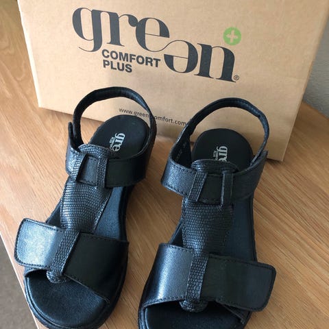 Sorte sandaler fra Cruz med 4 remme, hvoraf 2 er justerbare og 2 er flettede.