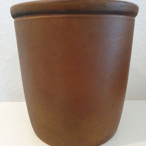 Skøn antik 3 l syltekrukke med mørk brun skraveret glasering og sort inderglassur.