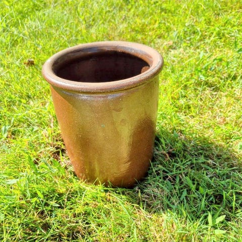 charmerende brændingsfejl der giver denne krukke et helt unikt udtryk med let oval top og rund bund, samt flere nuancer i glasuren.