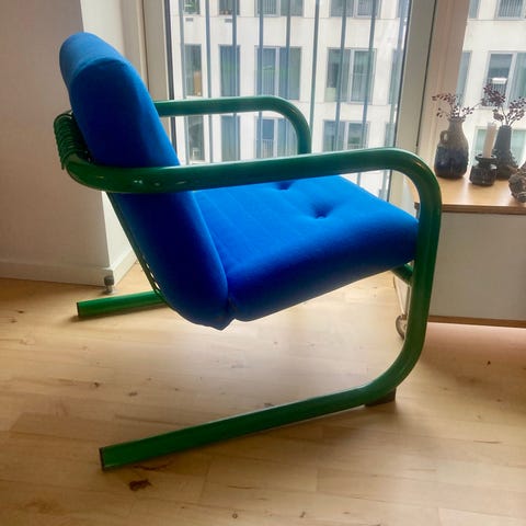 Friis Moltke frisvinger loungestole med metalstel og hynder i uld.