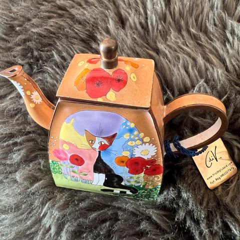 Samlerobjekt tekop med underkop fra Charlotte di Vita i kobber og emalje med motiver af Rosina Wachtmeister. Nummereret eksemplar. Ca 4,5 cm høj og ca 6 cm bred. Evt. Fragt betales af køber.