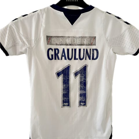 Fed AGF fodboldtrøje fra Hummel fitter ca. 146, men mål selv efter. Den er 53 lang og 39 bred (armhule) Graulund på ryggen.