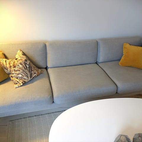 The sofa two seater Haiku is part of a collection designed by GamFratesi for Fredericia brand. The sofa is characterized by an leather or fabric outer shell combined wiht a softer interior available in a wide range of upholstery. Haiku is completed with two cushions. The frame is black laquered.