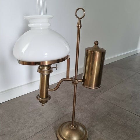 Lampen, der står på en pt upudset messingfod, sælges til en AFHENTNINGSPRIS af KUN kr 400 - ved forsendelse tillægges GLS gebyr.