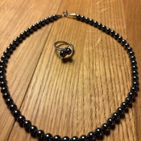 Blodstens perlekæde med ørestikker