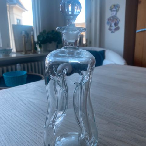 Meget fin klukflaske fra Holmegård. Flasken er hel uden fejl osv. Højde: 21 cm. ex prop. (13)