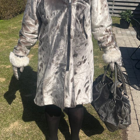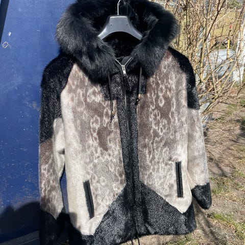 Den har en smuk hætte med kraftig rævetrim/snefang og en elegant skrå lynlås lukning, der giver de helt rigtige kvindelige former.