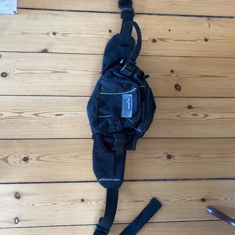Tasken har 3 lynlås lommer og en lomme til vandflaske.