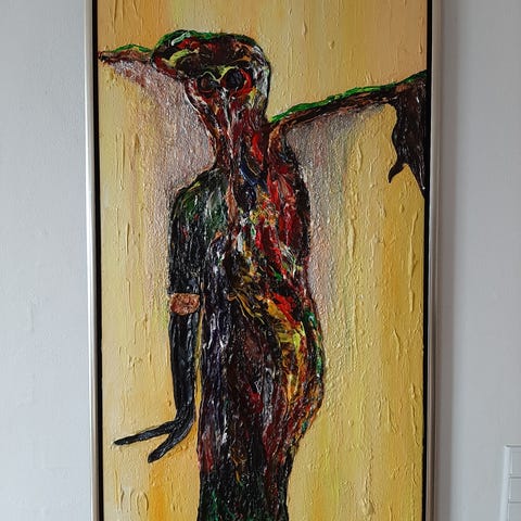 Akrylmaleri, Leif Rabøl, 80x100cm. Fiks færdig, privat, figurer..