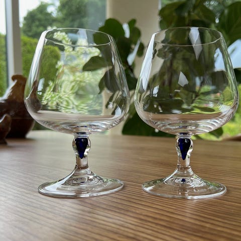 Glas, Cognac glas, Cristal D'arques, 10 stk cognacglas fra serien Saphire/blå dråbe fra Cristal D'arques, Frankrig.