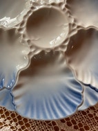 7 fine østerstallerkener fra La Porcelain de Badour, Belgien.