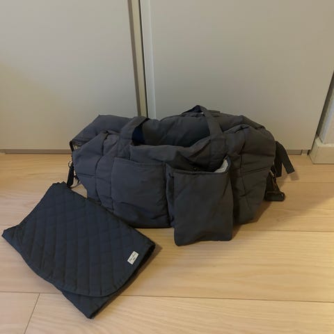 Pusletaske, Kongens Sløjd, Trykknappen giver dig mulighed for at klare bleskiftet med en hånd, og de to lommer giver plads til de vigtigste ting til bleskiftet