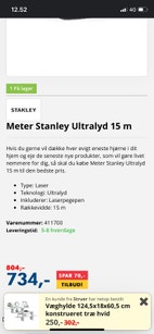 Stanley meter måler. Se billede 2 og 3 for beskrivelse