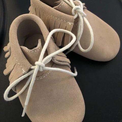 Bløde og søde baby mokkasiner i sort ruskind str. 0 år. Nypris 400kr