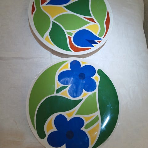 Platten har hul til vægophæng og den er stemplet på bagsiden med IMF-IBRD and affiliates, Annual Meetings, Copenhagen, September 1970 samt Royal Copenhagen logo, de 3 bølger og malersignatur.
