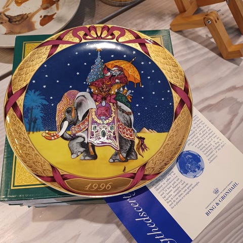 Platter, B&G 1991. Julemanden på rejse., Fin porcelænsplatte fra Bing & Grøndahl.