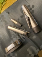 Georg Jensen tre-delt barsæt med bl.a. øloplukker og vi åbner i fin sort holder.