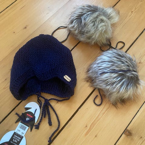 Hue, Strikket hue, Pusblu, str. 104, Helt ny hue som selvfølgelig er i god stand uden huller eller lignende.