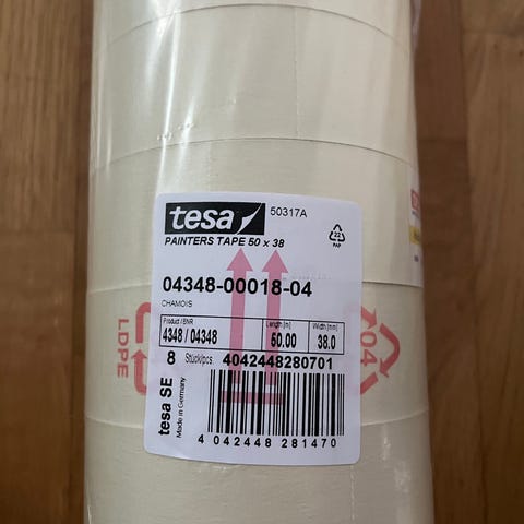 50m lang 50mm bred dobbeltklæbende tape. Nyprisen er ca 130 kr. Prisen er pr. rulle, jeg her 7 ruller i alt. Jeg giver lidt rabat ved køb af flere.