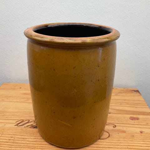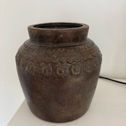 Brun keramik krukke - 14 cm høj.
