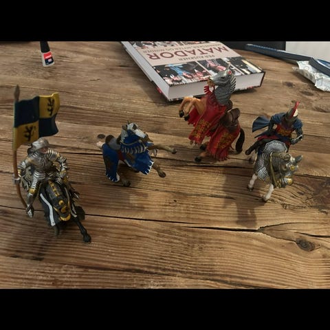 Alle 4 heste har defekter især på ben: 2 heste mangler hale (se fotos) Soldat er i pæn stand med mindre malingsafskalninger.