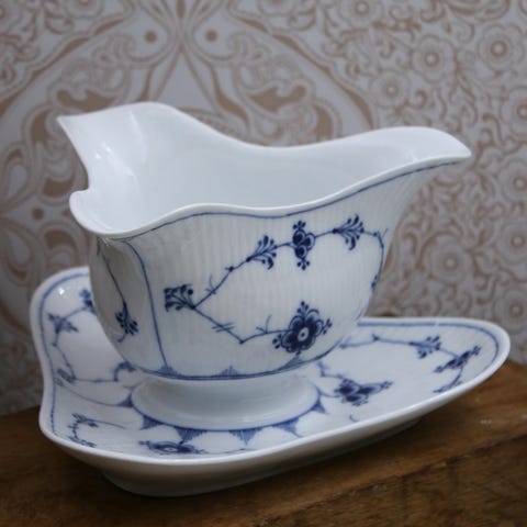 Porcelæn, Bredbakke fad, Royal Copenhagen, Riflet musselmalet
