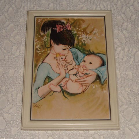 Christel Marott børnemotiv - med ramme måler det - 13 x 18 cm