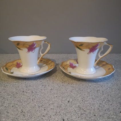 Små afslag på foden - et lille på det ene krus, flere små på det andet, se billeder. Ellers pæn stand.