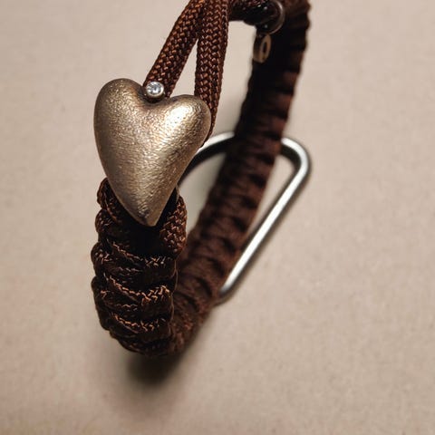 Armbåndet er fremstillet i faldskærmsline med sølv hjerte og brillant på 0,02 carat W/P1.