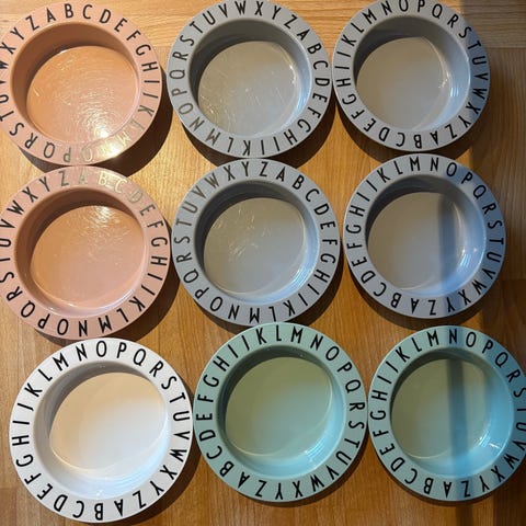Arne Jacobsen, Design Letters ABC-tallerkner i grå farve.