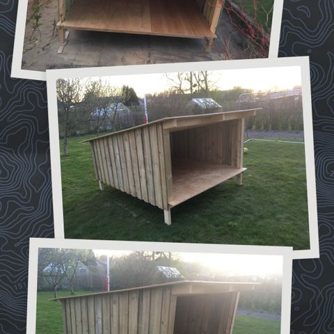 Stort og lækkert shelter i lærketræ med masser af plads til overnatning og hygge.