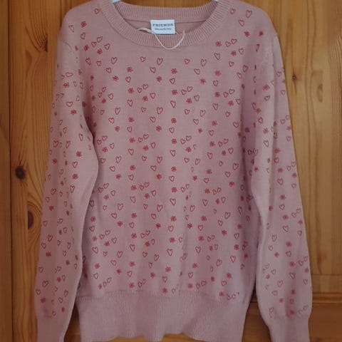 Super sød strik med hjerter i str. 80 fra H&M. Kommer fra røg- og dyrefrit hjem.