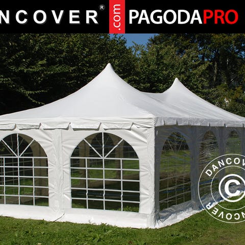 Vandtæt PVC White partytelt fra Dancover. Mål : 5×5 m . Aftagelige sider , 2 døråbninger.