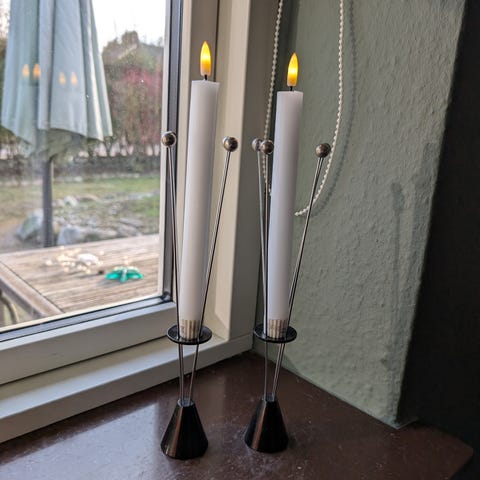 Super flotte postmoderne Memphis Milano æra style, 80'er lysestager med vinge i let metal og messing. Super fin stand. 6 stk. haves. Sælges samlet for 800 kr. Afhentes på Nørrebro.
