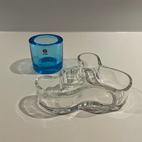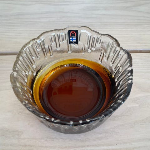 Smukt glas af finske Jorma Vennola for Iittala. Klart glas med relief af graner, H 11 cm