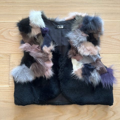 Uden mærke pelsvest i sort farve, størrelse 36 til kvinder. Vestens materiale er ægte polar ræv pels, designet som en frakke uden ærmer.