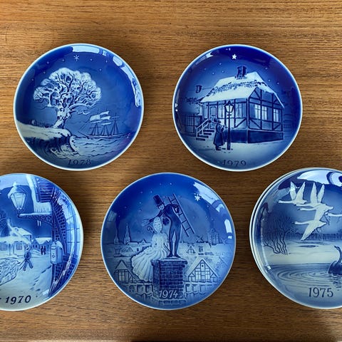 Juleplatter, Desiree / Hc Andersen, 70, Alle årgangene af juleplatterne fra Porcelænsfabrikken Desiree, mange af dem er motiver fra HC Andersens eventyr og fordi de er uden relief i kanten( som dem fra Royal Copenhagen ) passer de ret fint sammen med dem fra Bing & Grøndahl EAJUL